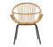 The seat is made from eco-friendly rattan and boasts a curvaceous, retro-inspired design. Its thick outer section forms a frame for the series of vertical and horizontal poles. Cross banding provides structural integrity and added tactile appeal. The chair stands on slim legs made from iron, with a black finish that complements the grey wash of the rattan.