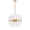 Aged brass finish 10-light pendant with glass rods in varying heights which refract the light. This pendant is supplied with three rods 155mm, 305mm and 610mm. Any combination of these rods can be used to vary the height of the fitting.