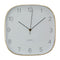 Its case is made from smooth metal and has a slim design that contributes to the clock's subtle aesthetic. The metal has a rose gold colour that allows the clock to be styled with warm metallic lighting and textiles. It features a mirrored face, adding to its reflective appeal. The minute and hour hands are coloured black and are slim to complement the overall design.