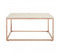 This coffee table evokes transparent hues with its rectangular tempered glass top. Its natural veneer finish legs intersect each other forming a minimal, latticed base.