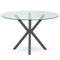 This dining table will bring an industrial and urban accent to the area with its angular design. Topped with a round glass top that sits neatly on a black matte iron frame, this dining table is supported by an X-shaped base for added support.