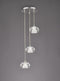 In silver when unlit but the glass takes on a 3D holographic effect when illuminated. Supplied with a chrome finish and clear cable suspension.