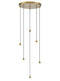 An 3-light fitting with matt gold finished metalwork and black cable suspensions. The pear-shaped glasses are lightly textured and come in four colours and two sizes with can be matching or inter-mingled for a unique combination. The cable lengths are adjustable and glass shades sold separately.