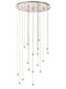 A 6-light fitting with satin nickel finished metalwork and clear cable suspensions. The pear-shaped glasses are lightly textured and come in four colours and two sizes with can be matching or inter-mingled for a unique combination. The cable lengths are adjustable on site prior to installation. OR Available with a choice of clear, amber, smoked or matt opal glass spheres in various sizes. Glass sold separately.
