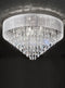 Fitting in chrome finish with a mass of crystal glass drops surrounded by a textured translucent silver fabric shade.